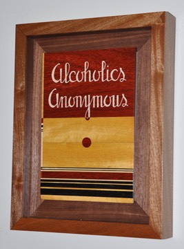 Inlayed Lettering ;Red = African Paduk ; Yellow = Yellowheart ; Black = Gaboon Ebony ;
