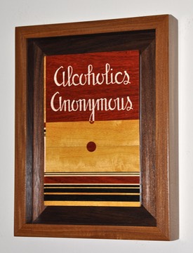 Inlayed Lettering ;Red = African Paduk ; Yellow = Yellowheart ; Black = Gaboon Ebony ;