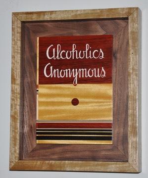 Inlayed Lettering ;Red = African Paduk ; Yellow = Yellowheart ; Black = Gaboon Ebony ;
